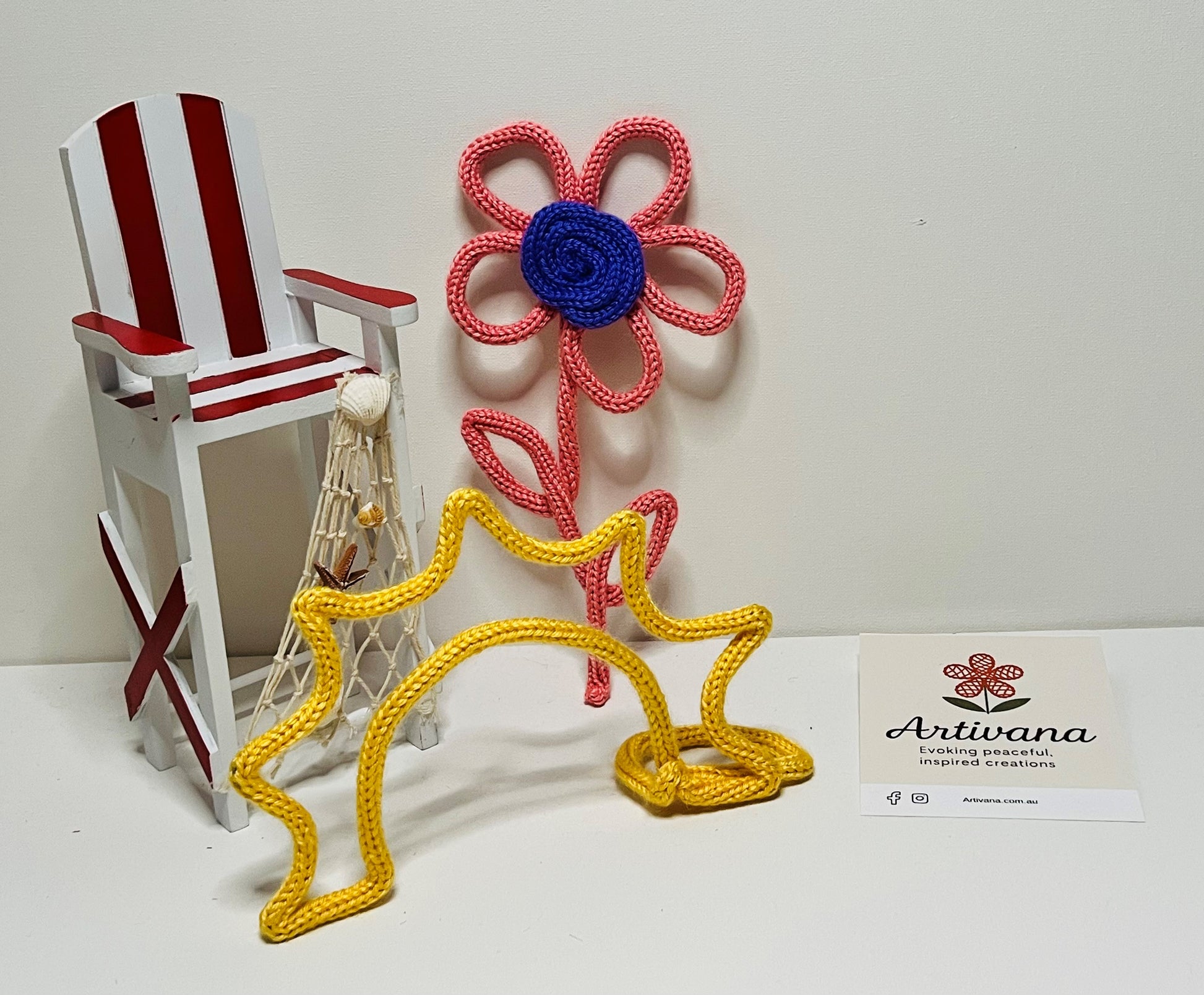 Handcrafted using a soft acrylic yarn, carefully wrapped around flexible wire to create its playful shape. The yarn is gentle to the touch, making it safe for use in nurseries and children’s spaces. The inner wire provides structure while allowing the design to retain its form over time.